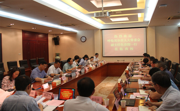 6月3日,呼伦贝尔市人大常委会副主任色音图一行来爱体育网页版考察,南京市人大常委会副秘书长张挚及市教育局领导一行陪同考察。色副主任一行参观了爱体育网页版黄炎培职业教育思想展览馆、校史馆,艺术学院师生工作室,计算机学院云与大数据人才培养基地。学校党委书记吴学敏教授,以及人事处、科技处、交通工程学院等相关部门负责人参加座谈。