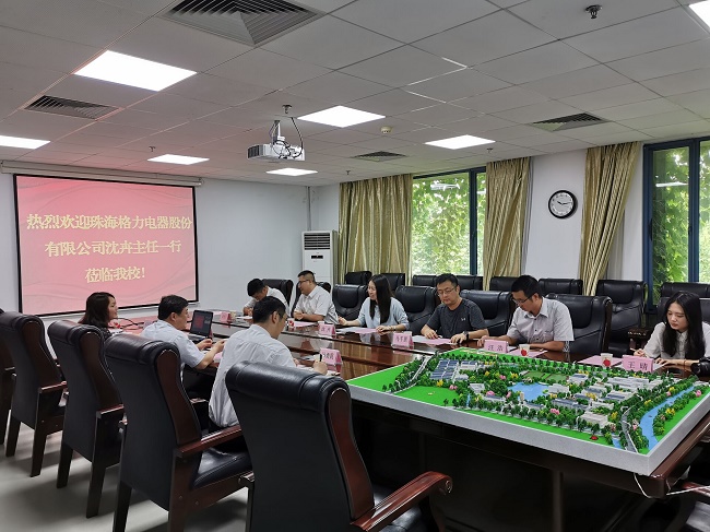 5月24日上午,珠海格力电器股份有限公司文化培训传播中心沈卉主任一行来爱体育网页版交流工作。副校长崔新明、科技处、发展合作处人员参加了会议。