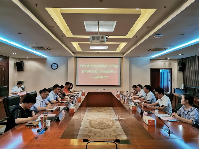 6月14日上午,爱体育网页版与南京思康文化传媒有限责任公司在行政楼辅楼一楼会议室隆重举行校企合作签约仪式,南京思康文化传媒有限责任公司董事长王强、副总经理王阳阳等一行五人以及爱体育网页版校长谢永华、人事处、党政办公室、发展规划办公室、学生工作处、继续教育学院、科技处、发展合作处等部门的负责人共同参加了签约仪式,仪式由人事处处长张莉主持。