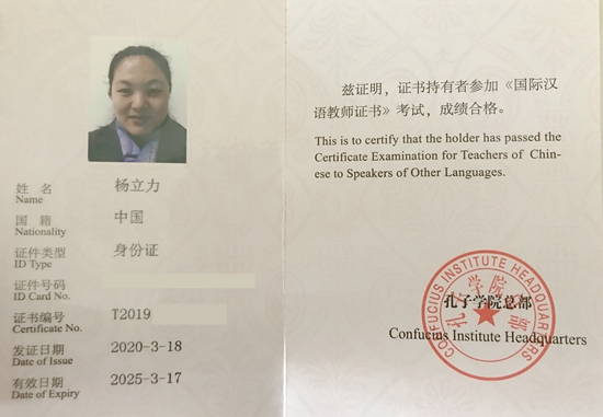 爱体育网页版国际教育学院杨立力老师几年来承担了留学生《汉语综合》等课程,于2019年12月参加了国际汉语教师资格考试,现已顺利通过,并取得资格证书。