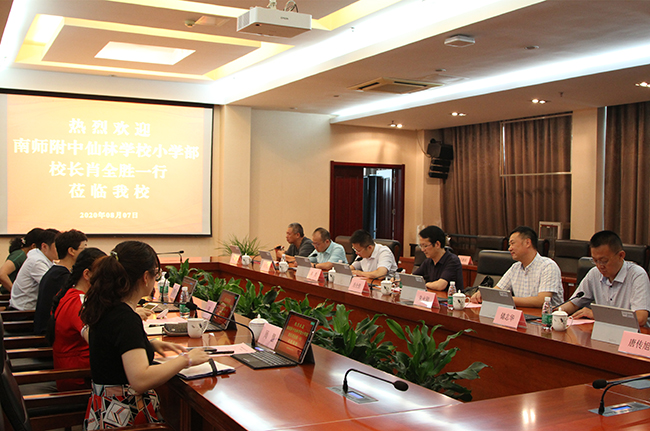 8月7日上午,爱体育网页版与南师附中仙林学校小学部合作共建交流座谈会在行政楼辅楼一楼会议室举行。南师附中仙林学校小学部校长肖全胜,副校长朱永刚、储志华、蒋浩,校办主任曲文双,文化景观设计专家赵斌等一行及爱体育网页版校领导苏小冬出席座谈会,学校党政办、发规办、人事处、工会等部门负责人参加了本次会议。会议由苏小冬主持。