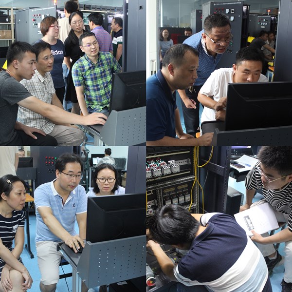 培训期间,团队九位专家就全国和江苏省职业院校技能大赛比赛机制、考核内容、技术规范、评分标准以及指导方法等方面,对如何指导比赛学生进行了细致的分析和解读,进一步深化了学员对技能大赛的认识。实践课程中,学员们在专家指导下,模拟现代电气控制系统安装与调试赛项真实赛题,分模块学习和实践,切实提高了教师的实践技能水平和带赛水平。学员们认真听讲,积极互动,通过分组研讨、分组实践、优秀作品展示、专家点评,达到了良好的培训效果。