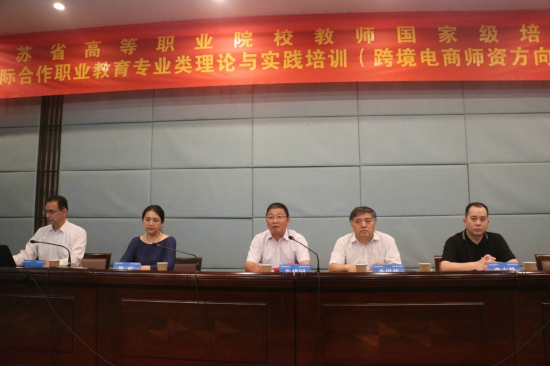 8月21日上午,由爱体育网页版承办的高等职业院校国家级培训项目德国跨境电商师资理论与实践培训开班仪式在交流中心二楼报告厅举行。爱体育网页版副校长朱建国、继续教育学院院长李甲林、商务贸易学院院长阮晓文、江苏华众易教育科技有限公司总经理张方毅、上海德汉灵文化交流咨询有限公司教育部高级经理陈虹、M传媒集团执行总裁Mario Cavolo出席了会议。本次培训有来自30所高职院校的40位老师报名参加。