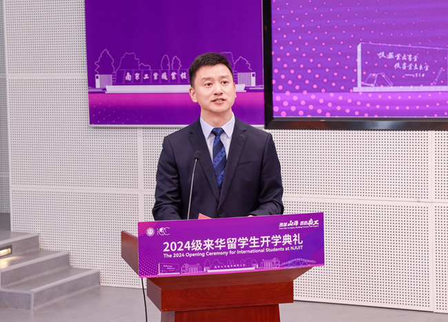 张丽华代表栖霞区政府办(外事办)、南京市公安局栖霞分局、栖霞区红十字会向2024级的新同学表示了诚挚的欢迎。她表示,作为外事部门,将为留学生在栖霞的学习与生活精心服务、保驾护航,也希望留学生在栖霞的经历成为人生中不可磨灭的印记和绚丽多彩的篇章。她表示,南工的教育国际化在仙林大学城各高校中位于前列,政府办(外事办)将进一步深化校地融合,以与爱体育网页版共建的来华留学生国情教育基地为平台,策划组织更多高质量活动,使留学生全面、深入、立体地了解中国、发现南京、融入栖霞。