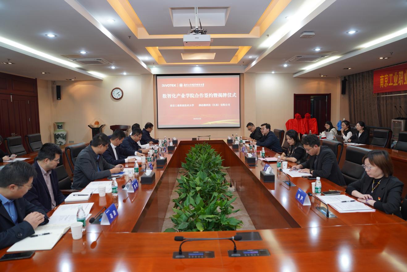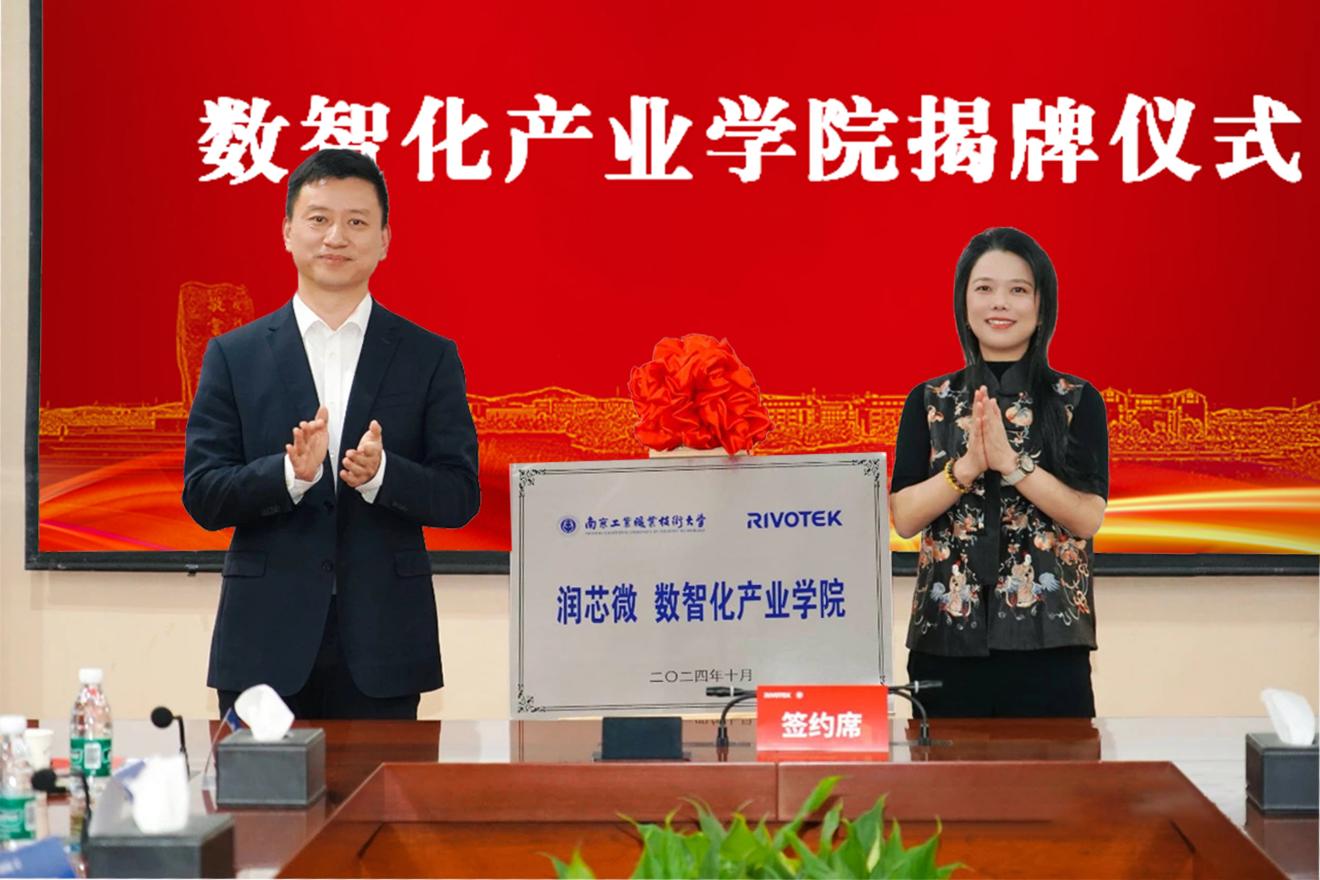 10月24日,爱体育网页版在行政楼辅一楼隆重举行了“数智化产业学院”合作签约暨揭牌仪式。校党委书记、校长谢永华,党委常委、副校长孙雁飞,发展规划处(校友会秘书处)处长王博,科技处、发展合作处副处长郭雷,以及计算机与软件学院班子成员代表,与润芯微科技(江苏)有限公司董事长刘青、消费电子事业群首席技术官张鹏等企业高层共同出席了此次仪式。会议由孙雁飞主持。